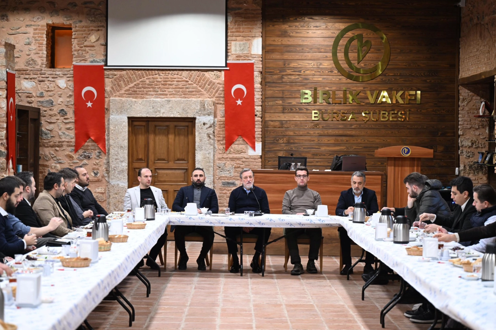 Gerçekleştirilen toplantıda, fikri ve irfanı merkeze alan vakıf anlayışının günümüzde toplumsal dayanışma ve ortak aklın güçlenmesine sunduğu katkılar ele alındı. Buluşmada, kent ekonomisine ilişkin değerlendirmelerin yanı sıra iş dünyasının küresel dönüşüm sürecindeki konumu, Bursa’nın üretim potansiyeli ve değerlerle şekillenen gelecek vizyonu üzerine görüş alışverişinde bulunuldu.