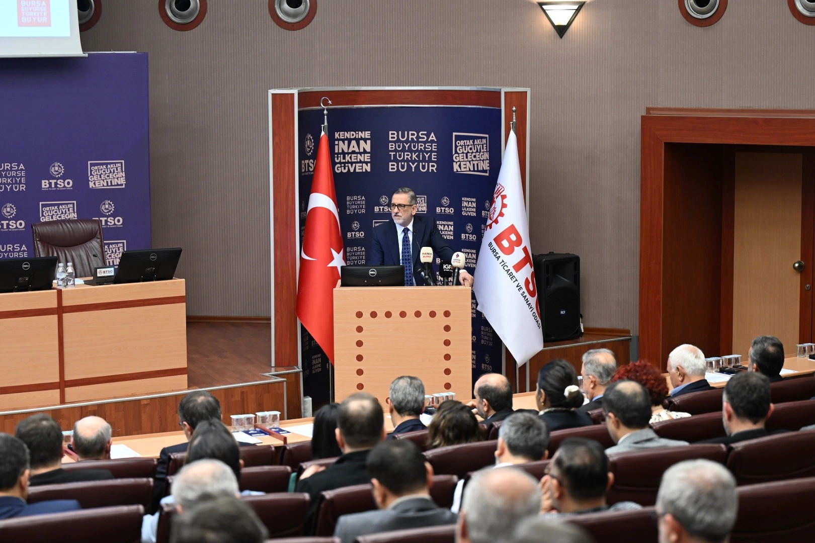 “2025’in ikinci yarısından itibaren daha olumlu bir tablo göreceğiz” BTSO Yönetim Kurulu Başkanı İbrahim Burkay, 2025 yılının özellikle ikinci yarısından itibaren ekonomide daha olumlu bir tablo görmeyi beklediklerini söyledi. İş dünyasının bu sürece hazırlıklı olması gerektiğini vurgulayan Başkan Burkay, “Her kriz dönemi fırsatları da beraberinde getirir ancak buna hazır olmanız gerekir. BTSO gibi kurumlar bu hazırlıkların yapıldığı, akıl teri dökülen yerlerdir. Üyelerimizin bu değişimden ve fırsatlardan en üst düzeyde faydalanması adına çalışmalar yürütüyoruz. Hayata geçirdiğimiz her proje ile aslında Bursa’nın ekosistemini değiştiriyoruz. 57 bin üyemizin geleceğini şekillendirecek, küresel trendlere uygun adımlar atıyoruz. En büyük savunma sanayii fuarları arasında yer alan IDEF’in organizasyonunu yapacağız. Farklı sektörlerde 37 UR-GE projesi yürütüyoruz. Bunlar kolay işler değil.
