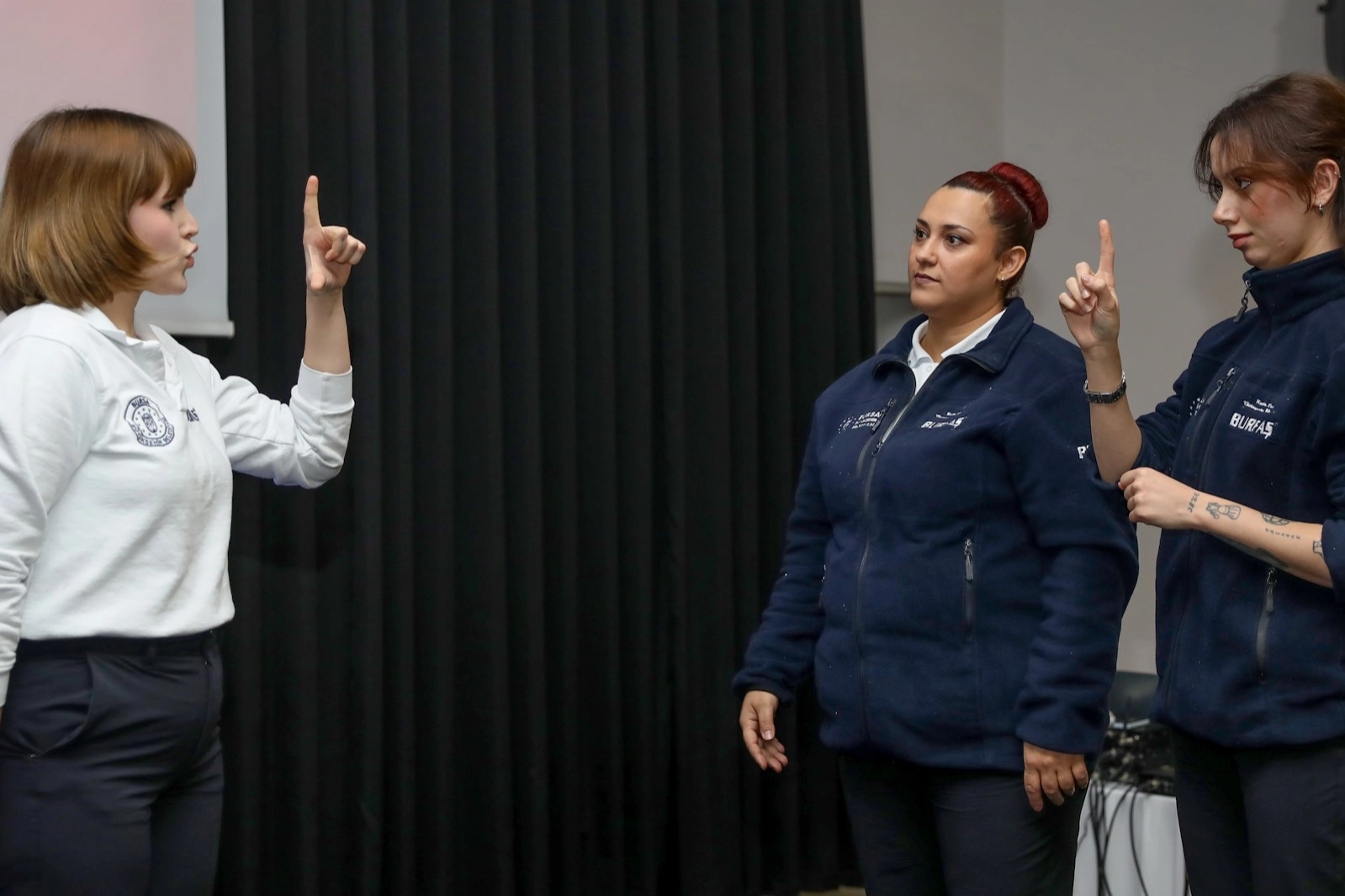 Bursa Büyükşehir Belediyesi iştiraklerinden BURFAŞ, işitme engelli bireyleri daha iyi anlamak ve onların hayatını kolaylaştırmak amacıyla personeline işaret dili ve etkili iletişim eğitimi verdi. Bursa’da kamusal hizmetlerdeki erişilebilirliği artırmak ve daha nitelikli hizmet sunabilmek amacıyla çalışmalarını sürdüren Bursa Büyükşehir Belediyesi, BURFAŞ sosyal tesisleri ve B Kafelerde görev yapan personele yönelik işaret dili ve etkili iletişim eğitimi düzenlendi. İnsan Kaynakları ve Eğitim Dairesi Başkanlığı Personel Geliştirme Şube Müdürlüğü koordinasyonunda 3 hafta boyunca Atatürk Kültür Merkezi Merinos Yerleşkesi’nde gerçekleştirilen programa, toplam 240 personel katıldı.