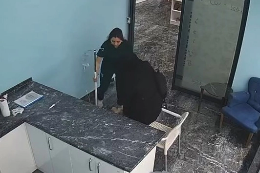 Veteriner kliniğinde çalışanlar sarsıntı sırasında panikle dışarı çıkarken, bir çalışan tedavi gören serum takılı köpeği içeride bırakmayarak sahibi ile birlikte dışarı çıkmasını sağladı. O anlar ise güvenlik kameralarına yansıdı.