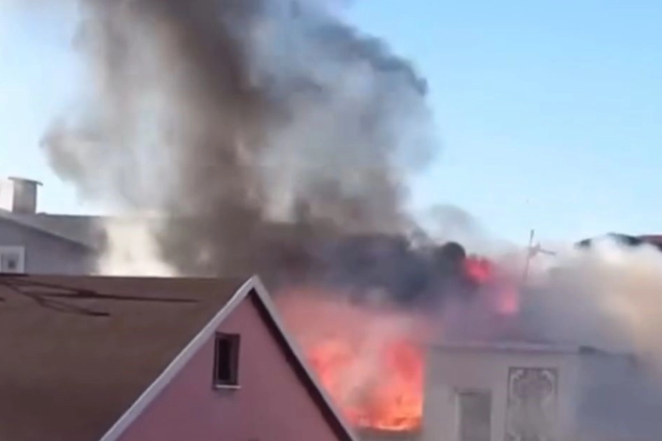 Yangında can kaybı yaşanmazken, çatı kullanılamaz hale geldi. O anlar ise çevredeki vatandaşların cep telefonu kameralarına yansıdı.