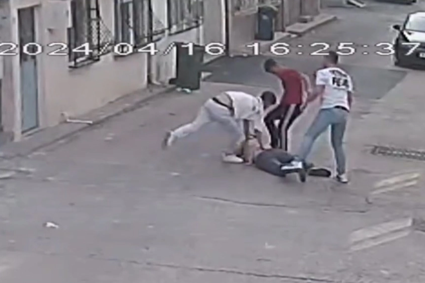 3 genç, sokak ortasında tek sıkıştırdıkları bir genci tekme, tokat ve yumruklarla dövdü.