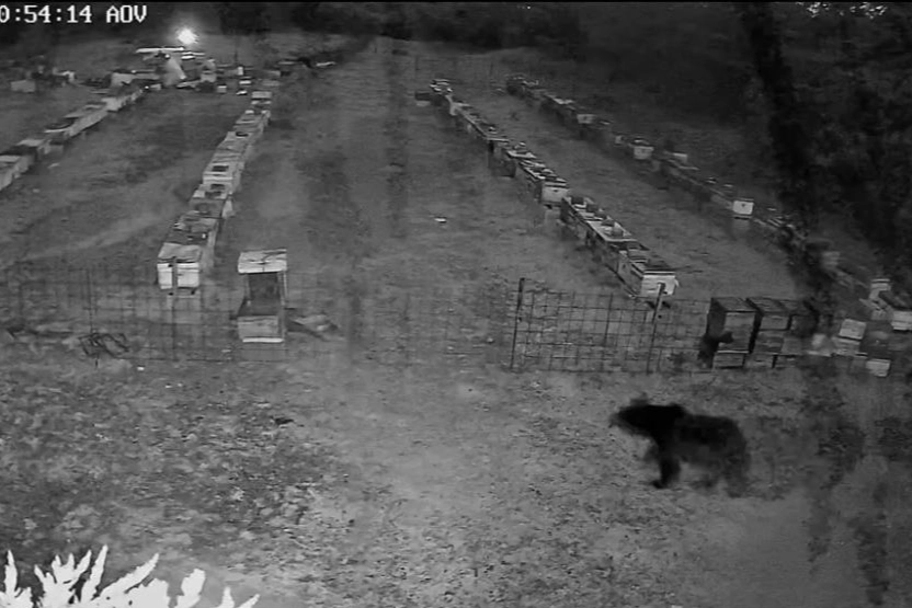 Uludağ eteklerindeki bir köye yakın arı çiftliğine gece saatlerinde giren ayı ailesi, arıcıların kabusu oldu. Anne ayı ve iki yavrusunun kovanlara ulaşmaya çalıştığı anlar güvenlik kameralarına yansıdı.