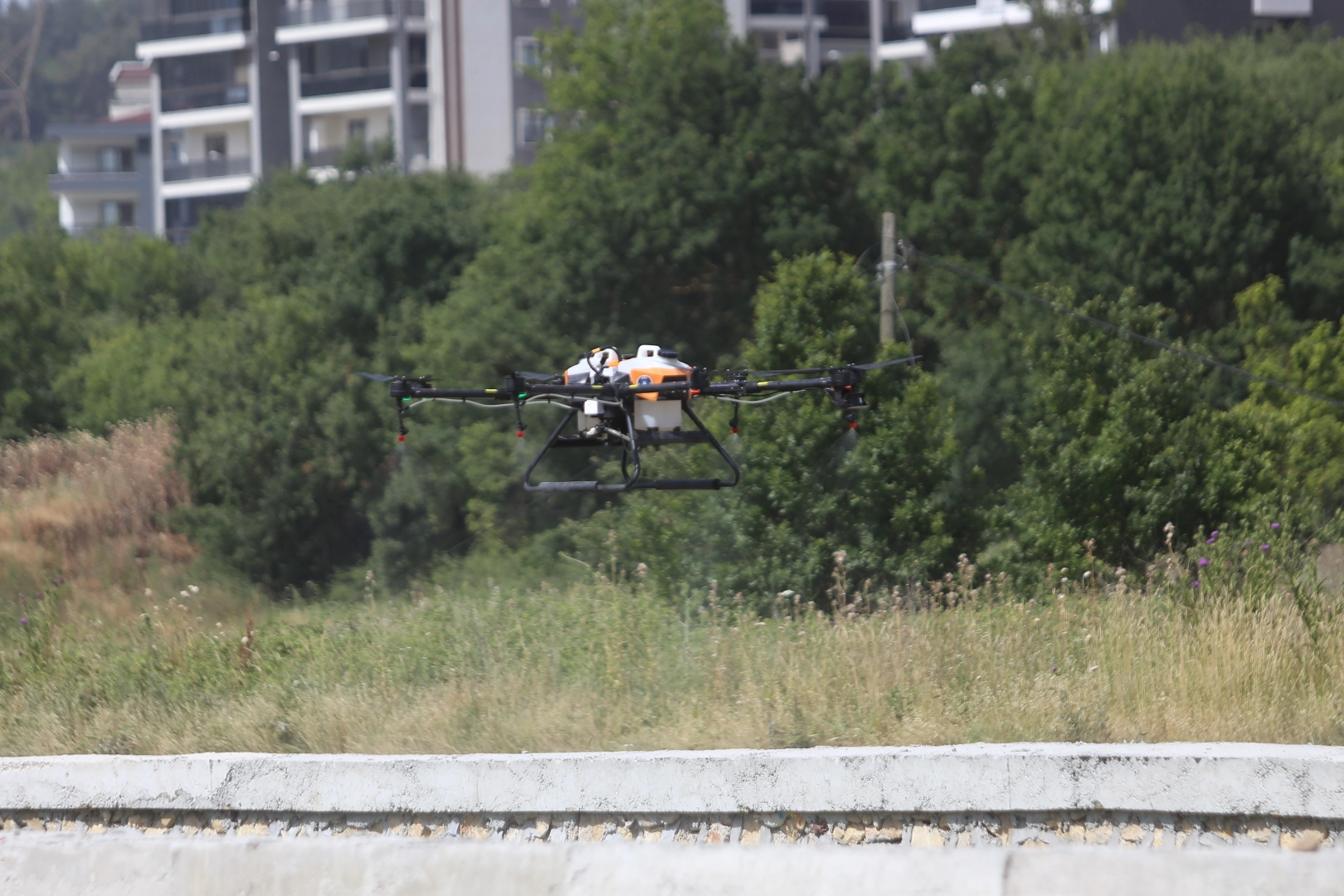 Bursa Büyükşehir Belediyesi Tarım Peyzaj A.Ş yaz aylarında artan sivrisinekler başta olmak üzere tüm haşerelere karşı dronla ilaçlama gerçekleştiriyor. Bursa Büyükşehir Belediyesi Tarım Peyzaj A.Ş yaz aylarında artan başta sivrisinekler olmak üzere haşerelere karşı dronla mücadele başlattı. Araçların giremediği dere yatakları, sulak ve otluk alanlar başta olmak üzere birçok noktada kullanılan ilaçlama dronlarının sayısının artması planlanıyor. Tarım Peyzaj A.Ş, dronları sadece haşere ilaçlamada değil, ilerleyen zamanlarda mahsul yetişen tarla ve bahçelerde de kullanmayı hedefliyor. Nilüfer ilçesine bağlı Kayapa Mahallesi'nden geçen derede haşerelere karşı dronla ilaçlama yapıldı.