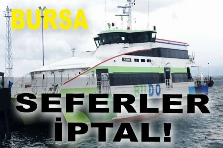 BUDO'nun internet sitesinde yer alan açıklamada, saat 07.00'deki Bursa (Mudanya) - İstanbul (Eminönü/Sirkeci), 08.30'daki İstanbul (Eminönü/Sirkeci) - Bursa (Mudanya), 09.30'daki Bursa (Mudanya) - İstanbul (Eminönü/Sirkeci), 09.30'daki Bursa (Mudanya) - Armutlu (İhlas), 10.00'daki Armutlu (İhlas) - İstanbul (Eminönü/Sirkeci), 11.30'daki İstanbul (Eminönü/Sirkeci) - Bursa (Mudanya), 14.00'daki Bursa (Mudanya) - İstanbul (Eminönü/Sirkeci), 15.30'daki İstanbul (Eminönü/Sirkeci) - Armutlu (İhlas), 15.30'daki İstanbul (Eminönü/Sirkeci) - Bursa (Mudanya), 16.55'deki Armutlu (İhlas) - Bursa (Mudanya), 17.45'deki Bursa (Mudanya) - İstanbul (Eminönü/Sirkeci) ve 17.45'deki İstanbul (Eminönü/Sirkeci) - Bursa (Mudanya) seferlerinin olumsuz hava koşulları nedeniyle iptal edildiği bildirildi.