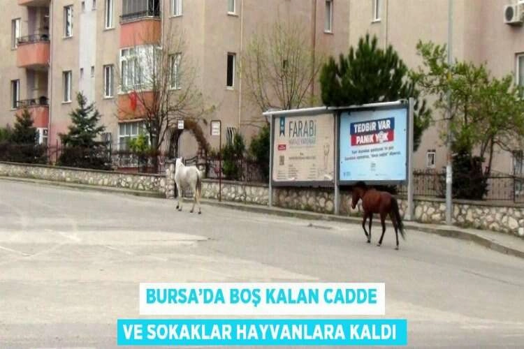 Bursa’da boş kalan cadde ve sokakların tadını atlar ve köpekler çıkardı. Hiçbir şeye aldırış etmeden gezen atlar ve köpekler güzel görüntüler oluşturdu.İçişleri Bakanlığınca sokağa çıkma kısıtlaması ilan edilen 31 şehirden biri olan Bursa’da cadde ve sokaklar boş kaldı. Boş sokak ve caddelerde dolaşan atlar ve köpekler ise kameralara yansıyarak güzel görüntüler oluşturdu.