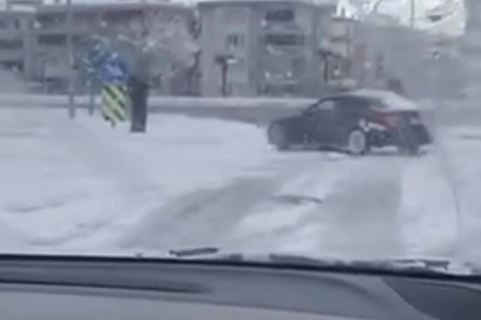 Kentte etkili olan kar yağışıyla birlikte kayganlaşan yollarda tehlikeli anlar yaşandı. Kar yağışını fırsat bilen bir sürücü, otomobiliyle kavşakta drift atarak trafik güvenliğini hiçe saydı. O anlar çevredeki bir vatandaş tarafından cep telefonu kamerasıyla kaydedildi.
