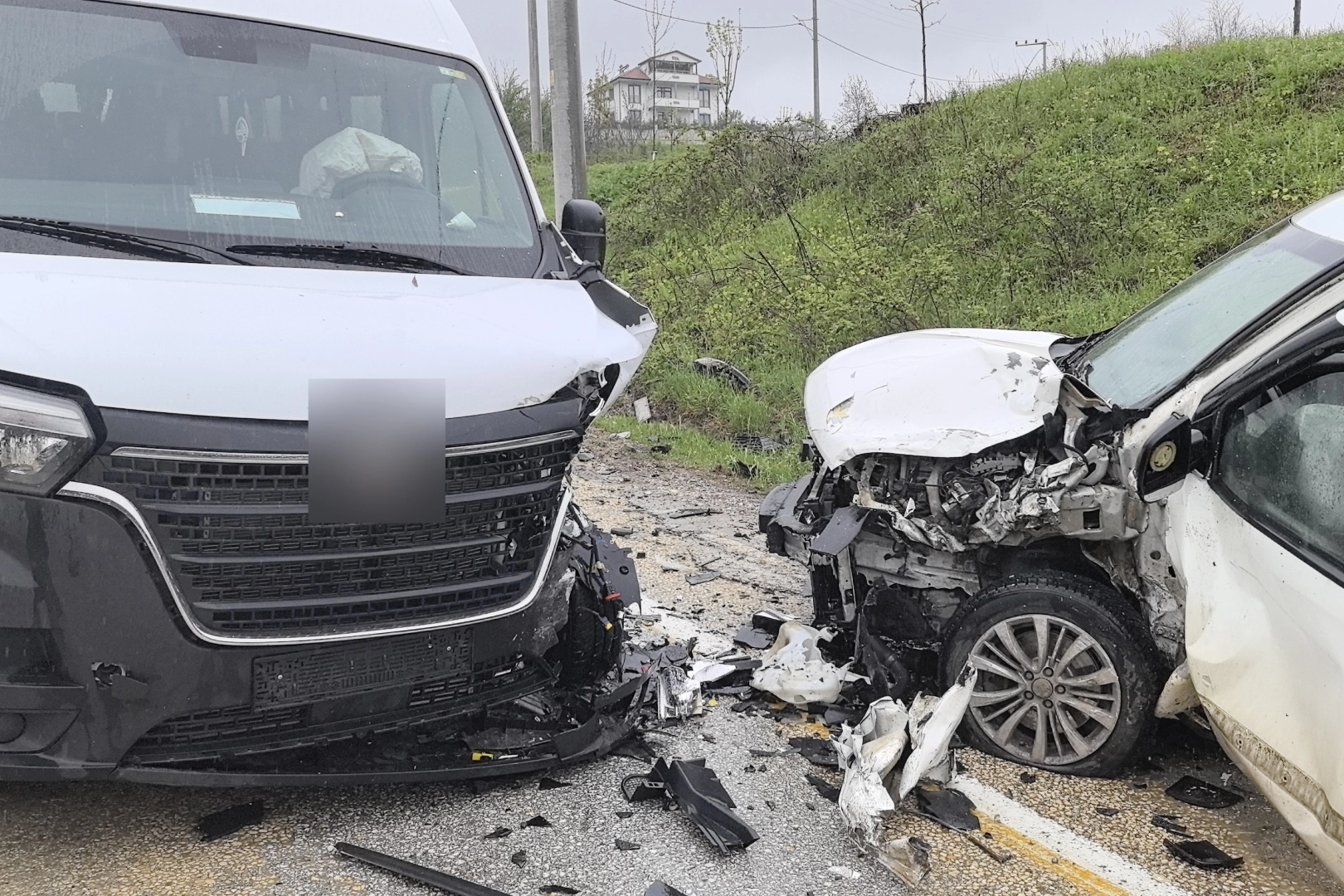 Bursa'nın İnegöl ilçesinde işçileri taşıyan servis minibüsü ile hafif ticari aracın kafa kafaya çarpıştığı kazada 13 kişi yaralandı.