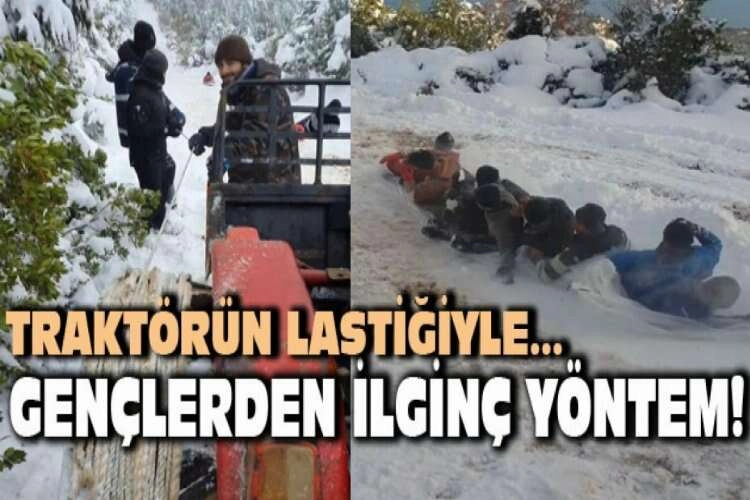 Önce kızakla kaydılar daha sonra yukarıdaki traktörün tekerine bağladıkları iple hem yorulmadan çıktılar hem de kayarak çıkıp kar yağışının tadını çıkardılar. İlk görüntüler Gemlik ilçesi Narlı mahallesinde meydana geldi. Yoğun kar yağışının en fazla etkili olduğu mahallelerden biri olan Narlı Mahallesi'nde gençler ilginç bir yöntem bularak kayak yapmayı daha keyifli hala getirdiler. Traktör lastiği yardımıyla önce yokuş aşağı kayan gençler, geriye de traktör lastiğine bağladıkları halat yardımı ile hem yorulmadan hem de kayarak keyif yaptılar. Öte yandan İnegöl Organize Sanayi Bölgesi’nde çalışan bir vatandaş işe gideceği yol kapalı olunca of road aracına bağladığı kızakla kayarak işyerine gitti.