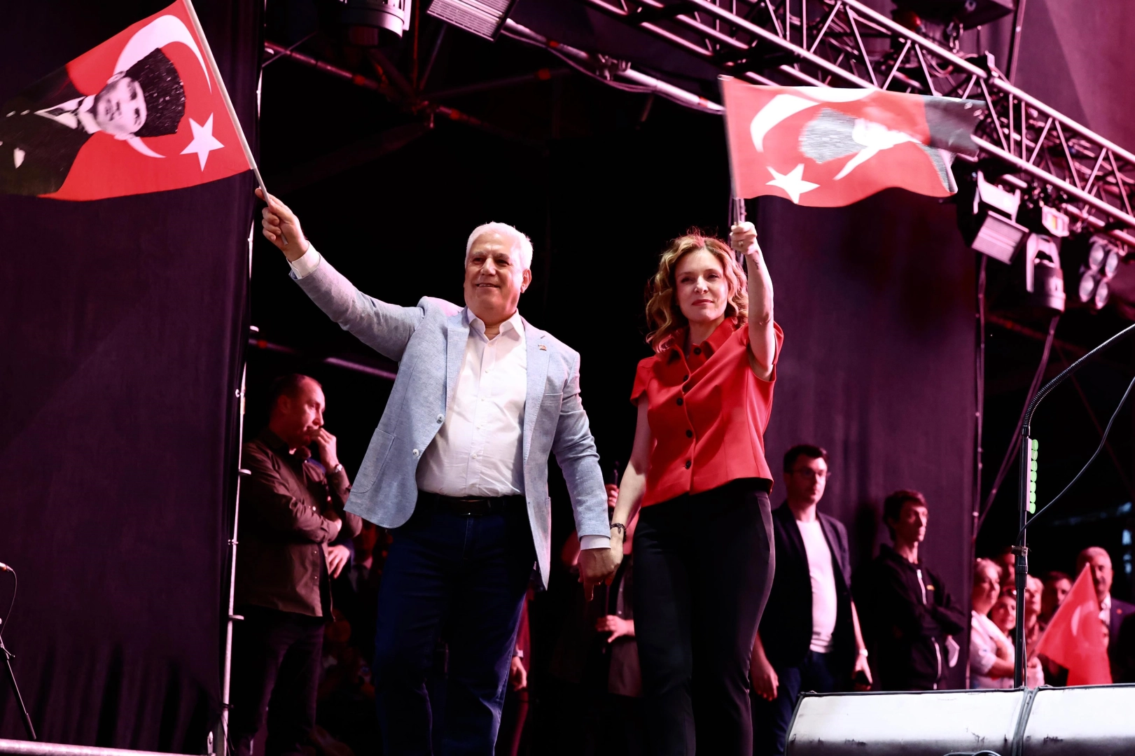 "Atamıza olan inancımızla başardık" Mor ve Ötesi konserinin öncesinde Gençliğe Hitabe ve Gençlik Meclisi Bildirisi okundu. Daha sonra eşi Seden Bozbey ile birlikte sahneye çıkan Başkan Mustafa Bozbey, alanı dolduran yaklaşık 100 bin kişiyi selamlayarak gençlerin bayramını kutladı. Konuşmasına "Gençler, ne kadar güzelsiniz. Harikasınız gençler" diyerek başlayan Başkan Bozbey, "Geldikleri gibi giderler" diyerek milletine umut olan Ulu Önder Gazi Mustafa Kemal Atatürk’ün, Anadolu’da yaktığı bağımsızlık ateşinin 106. yılını kutladıklarını söyledi. Bir milletin küllerinden yeniden doğduğu, özgürlüğün adını yüksek sesle haykırdığı günde bulunduklarını belirten Başkan Bozbey, 19 Mayıs’ın bağımsızlığa yürüyüşün, umuda tutunmanın ve geleceğe inancın simgesi olduğunu ifade etti. 106 yıl önce karanlıktan aydınlığa, esaretten özgürlüğe, saltanattan ulusal egemenliğe ilk adımın atıldığını dile getiren Başkan Bozbey, "Kolay olmadı. Bu toprakları işgalden kurtarıp Cumhuriyet’e ulaştırmak; sadece bir savaş kazanmak değil, aynı zamanda bir halkın değiştirmekti. Cesaret istiyordu. İnanç istiyordu. Umut istiyordu. Ancak biz başardık. Bir halk olarak, bir millet olarak, Atamıza olan inancımızla başardık. Umudumuzu yitirmedik. Yılmadık. Direndik. Ve sonunda Cumhuriyet’imizi kurduk" dedi.