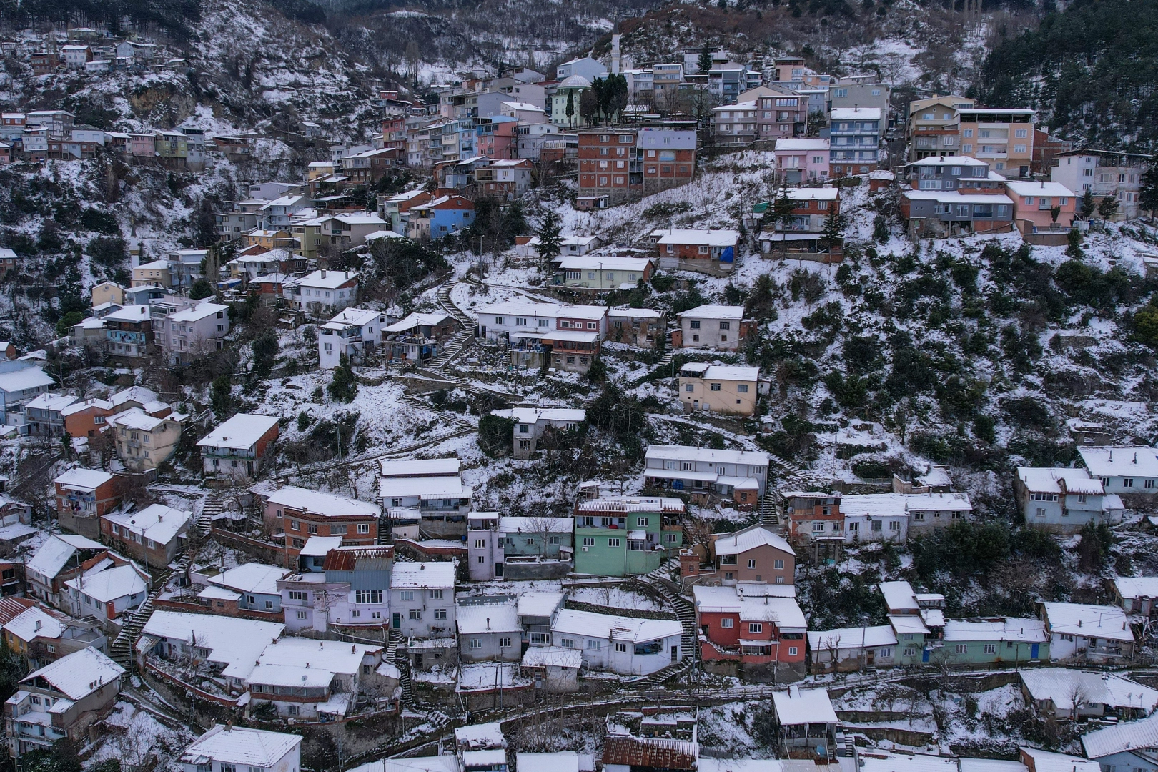 Bu güzel manzara havadan görüntülendi. Bursa'da aralıklara devam eden kar yağışının dinmesinin ardından kartpostallık görüntüler ortaya çıktı.