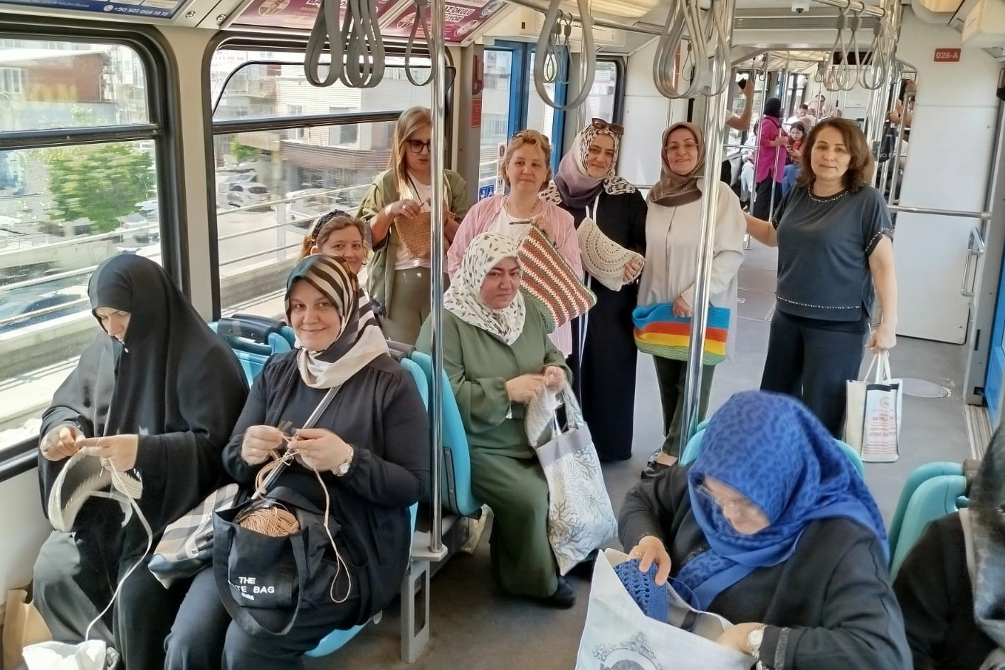 Bursa’da Osmangazi Halk Eğitim Merkezi (OSMEK) kurslarına katılan kadınlar, örgü işlerini alarak metronun yolunu tuttu. Metroda çantalarındaki işleri çıkaran kadınlar, Gazze’de işlenen insanlık suçuna dikkat çekmek için yolculuk süresi boyunca örgü ördü. Metrodaki diğer yolculardan da güzel tepkiler alan kadınlar, bu tarz etkinliklerin devam edeceğini belirterek, tüm ev kadınlarına etkinliğe katılma çağrısında bulundu.