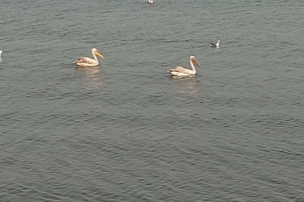 Kendilerini görüntüleyen insanlara aldırış etmeyen pelikanlar gölde yüzerek güzel havanın tadını çıkardı.