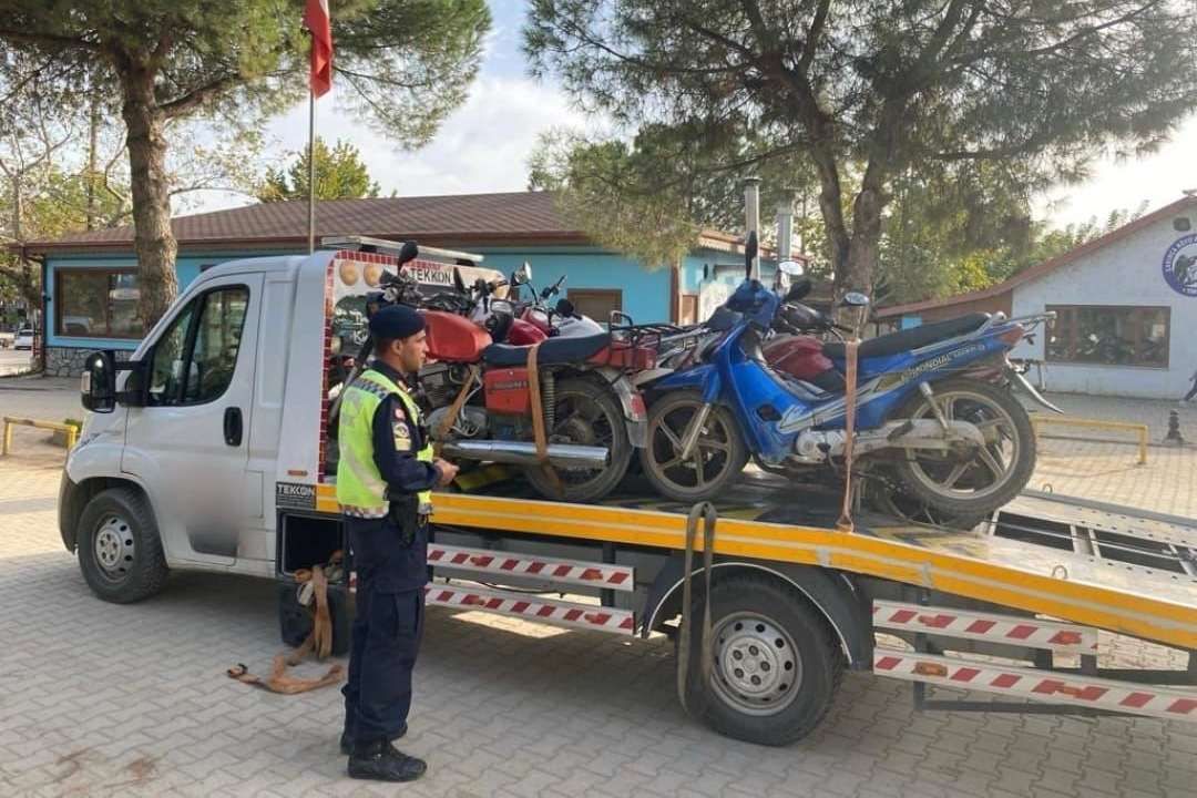 Bursa'nın İznik ilçesi Boyalıca Mahallesi’nde tescilsiz ve plakasız 8 adet motosiklet tespit edilirken, motosikletler muhafaza altına alınarak yediemin otoparkına çekildi. 1 otomobilin sorgulamasında araç ile plaka uyumsuzluğu olduğu, plakanın traktör plakası olduğunun tespit edilirken şahsa Resmi Belgede Sahtecilik suçundan adli işlem yapılarak, Trafik Jandarması tarafından 20 bin 302 TL idari para cezası kesildi. 1 erkek şahsın kullandığı plakasız motosikletin yapılan kontrollerde şase ve motor numaralarının kazılı olduğu tespit edilerek, şahsa resmi belgede sahtecilik suçundan adli işlem yapıldı. Uygulama sonucunda Jandarma tarafından 8 tescilsiz motosiklet, 1 şase ve motor numarası kazınmış motosiklet ile 1 sahte plakalı kamyonet olmak üzere 10 araç Yediemin Otoparkına çekilirken toplam 14 araca yasal işlemleri yapılarak 31 bin 23 TL idari para cezası uygulandı.
