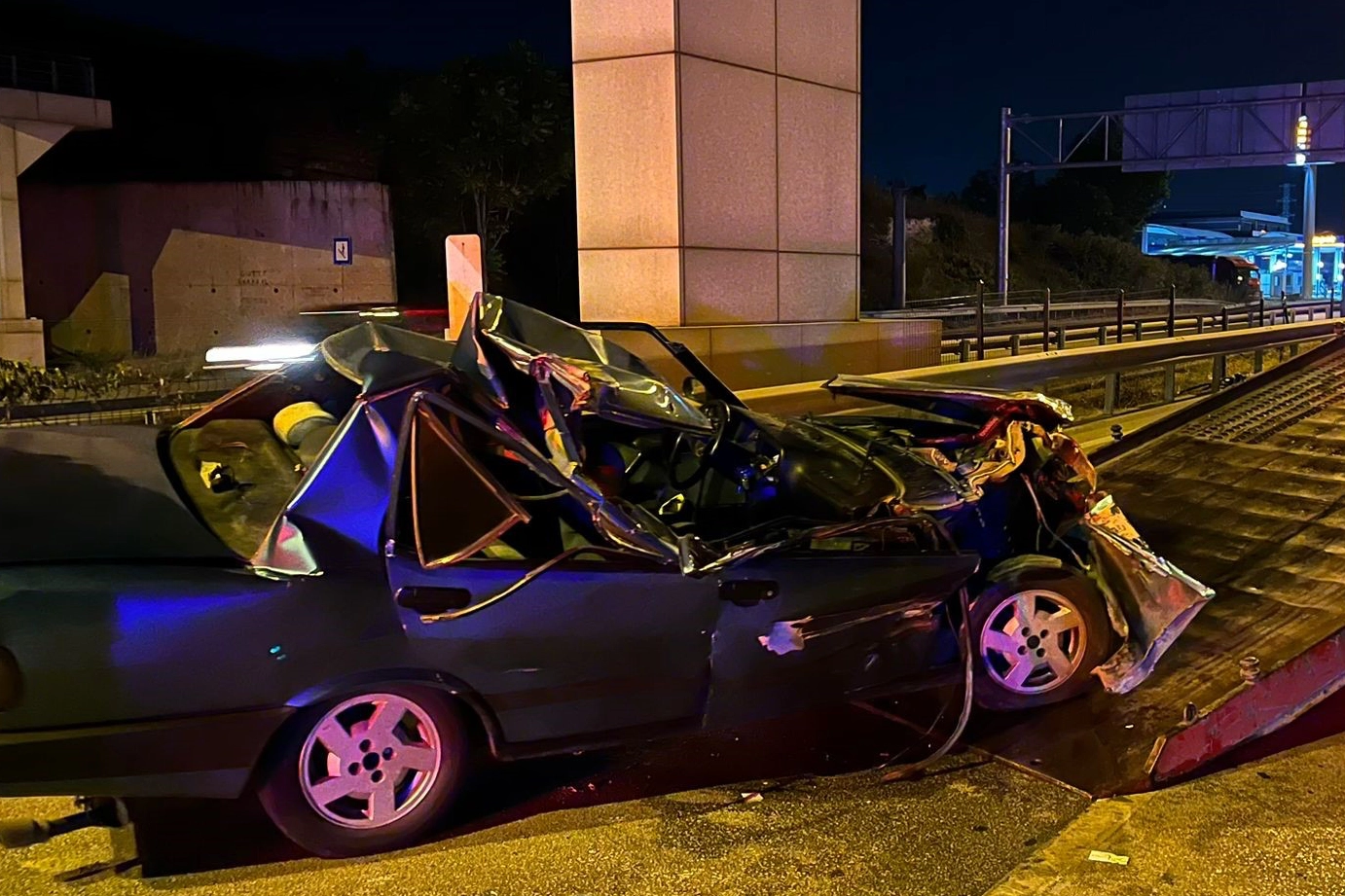 Bursa'da seyir halindeki tıra arkadan çarpan otomobil, sürücüsünün kontrolünden çıkarak bariyerlere çarptı.