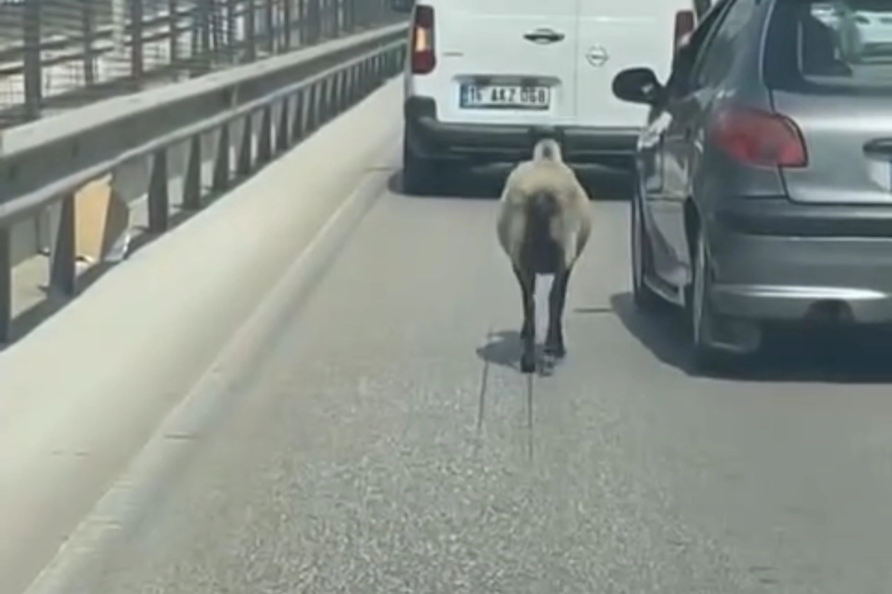 Sahipleri koyunu yakalamaya çalıştı ancak akan trafikte yakalamak mümkün olmadı.