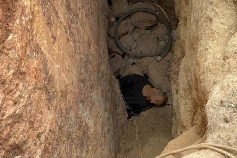 Mağara girişinde bir kişinin cansız bedeni kameraya yansırken, yanı başında bulunan hortum da dikkat çekti.