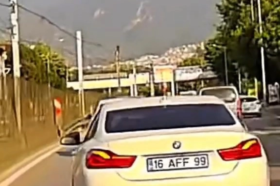 Bursa'da makas atarak trafiği tehlikeye atan sürücü kameraya yansıdı.