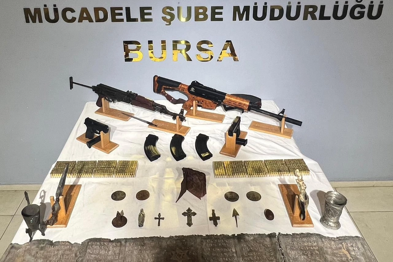 Bursa'da ruhsatsız silah imal edip ve ticareti, aynı zamanda tarihi eser kaçaklığı yapan şahıslara yönelik operasyon düzenlendi.