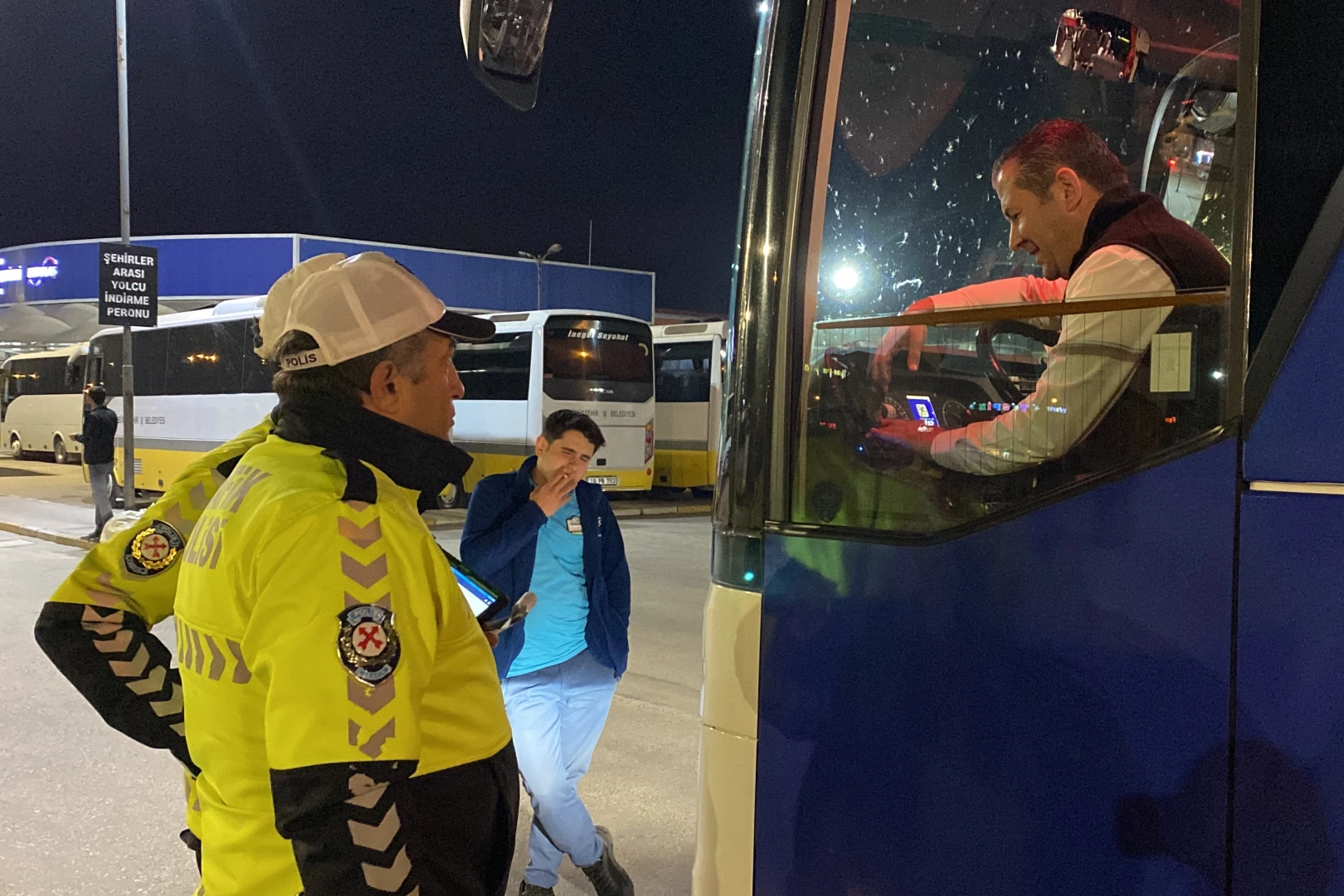 Ramazan Bayramı’nda 9 günlük tatili şehir dışında geçirmek isteyen vatandaşlar, İnegöl Şehirlerarası Otobüs Terminali'nde yoğunluk oluştururken trafik ekipleri denetim gerçekleştirdi.