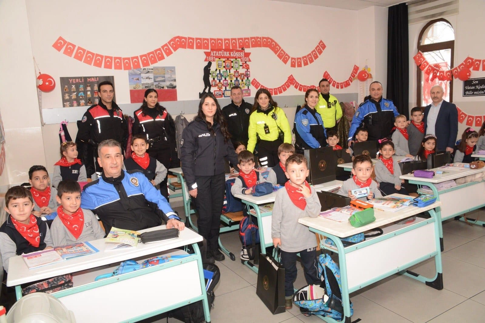 Bursa'da polis ekipleri, ilkokul öğrencileriyle bir araya gelerek güvenlik konusunda bilgilendirme etkinliği düzenledi. Erhan Nasyalçın İlköğretim Okulu 1/F sınıfı öğrencilerinin Emniyet Teşkilatı'na yazdığı mektup üzerine, Bursa Emniyet Müdürlüğü Toplum Destekli Polislik Şube Müdürlüğü ekipleri okulu ziyaret etti. Ziyaret kapsamında öğrencilere kişisel güvenliklerini koruma yöntemleri ve temel güvenlik kuralları anlatıldı. Ayrıca Asayiş Şube Müdürlüğü'ne bağlı Motosikletli Polis Timleri (Yunuslar), Trafik Denetleme Şube Müdürlüğü'ne bağlı Motosikletli Polis Timleri (Şahinler) ve Osmangazi İlçe Emniyet Müdürlüğü personeli tarafından görev alanlarına ilişkin tanıtımlar yapıldı. Program sonunda öğrenciler, Emniyet Teşkilatı'nı temsilen çeşitli hediyelerle sevindirildi.