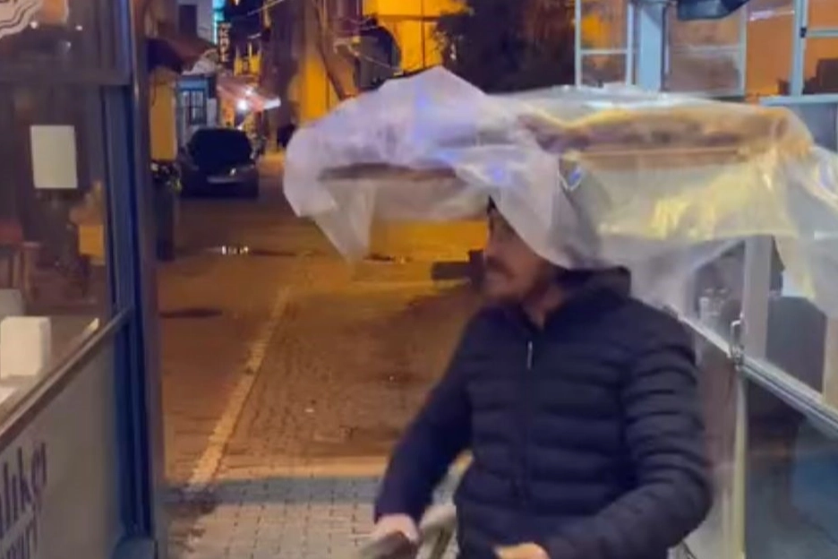Renkli anlar ise kameraya anbean yansıdı. Bursa'nın Osmangazi ilçesi Altıparmak Mahallesi'nde simit satan seyyar satıcı, tarihi Arapşükrü Sokağında ilerlerken, bir eğlence mekanında çalınan müzikle dans etmeye başladı.