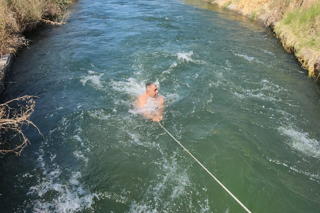 Gençler, serinlemek amacıyla köprü üzerinden kanala atlayarak yüzdü. Akıntıya karşı önlem olarak köprüye halat bağlayan gençler, bu halata tutunarak güvenliklerini sağladıklarını, küçüklüklerinden beri aynı yerde yüzdüklerini, sulama kanalının onlar için bir gelenek haline geldiğini dile getirdi. Suyun tehlikeli olabileceğini kabul eden gençler, buna rağmen sıcak havalarda başka seçenekleri olmadığı için bu yönteme başvurduklarını söyledi. Zaman zaman güvenlik güçlerinin bölgede devriye gezdiğini ifade eden gençler, emniyet ekiplerine yakalanmadan yüzmeye çalıştıklarını da ekledi.