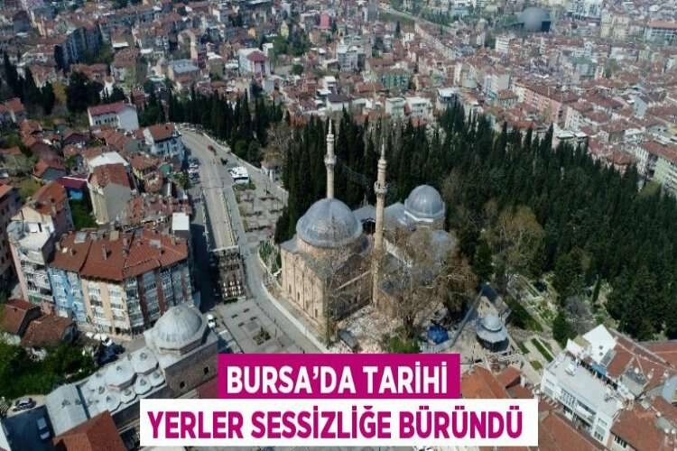 Bursa’da sokağa çıkma yasağının ardından tarihi mekanlar da boş kaldı. Boşalan tarihi mekanlar havadan görüntülendi.31 büyük şehir ve Zonguldak’a 2 günlük sokağa çıkma yasağı ile beraber Bursa’da tarihi mekanlar da sessizliğe büründü. Emirsultan Camii ve Türbesi, Yeşil Cami ve Türbesi, Ulucami, hanlar bölgesi, Cumhuriyet Caddesi, 15 Temmuz Demokrasi Meydanı güvercinlere kaldı. Polis şehirde güvenliği sağlarken, Osmangazi Belediye personeli de dezenfekte çalışmalarını aralıksız sürdürüyor. Tarihi yerler havadan drone ile görüntülendi.