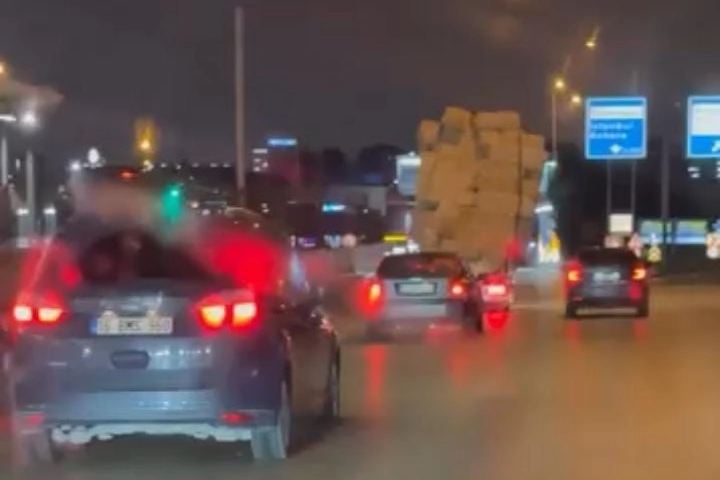 Özellikle yağışlı hava şartlarının etkili olduğu sırada kaydedilen görüntülerde, saman balyalarının herhangi bir ani fren, viraj ya da rüzgar durumunda yola savrulabilecek şekilde taşındığı görüldü.