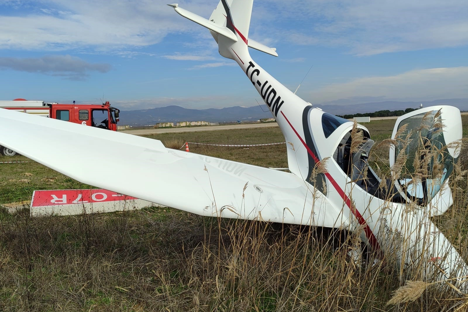 Özel uçuş okuluna ait eğitim uçağı, pisti terk ettiği esnada kaza kırıma uğradı. Uçaktaki pilot hafif şekilde yaralandı. Olayla ilgili soruşturma başlatıldı