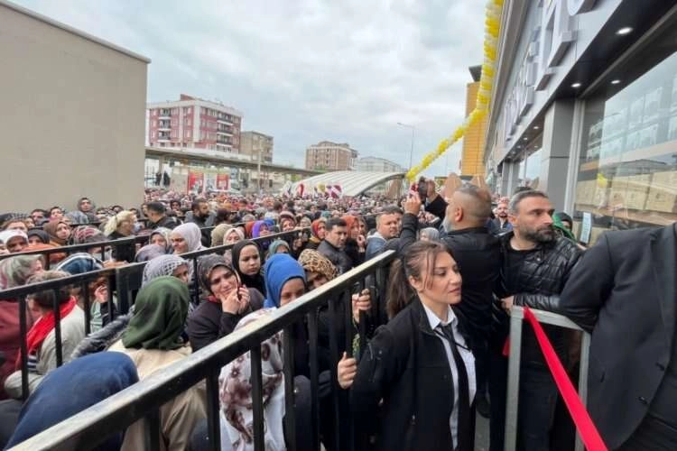 Yıldırım ilçesi Esenevler Mahallesi'nde yeni ev eşyaları ve aletleri satan mağaza, açılışa özel kampanya düzenledi. İndirimi duyanlar, sabahın erken saatlerinde mağazanın önünde toplandı.