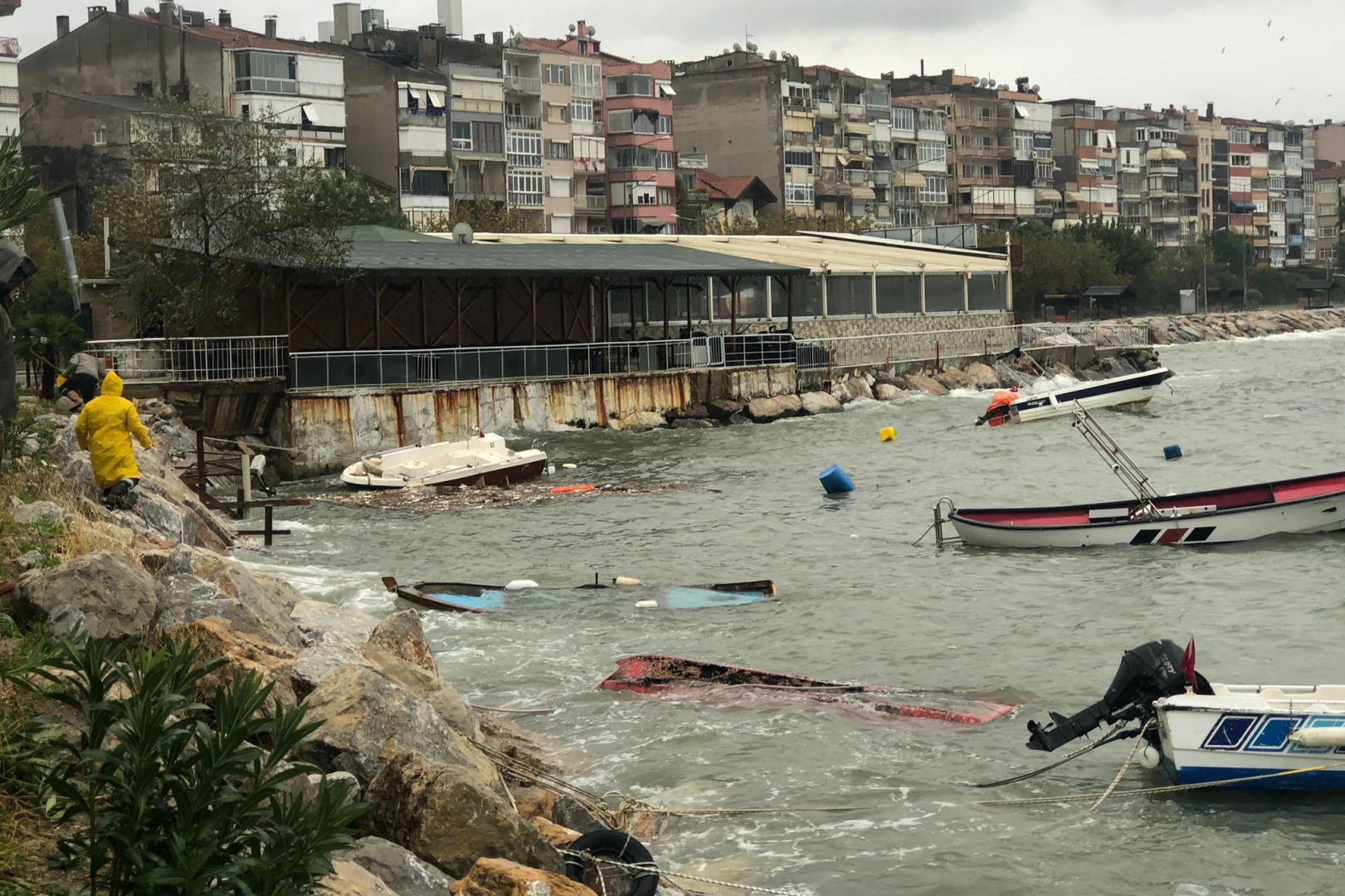 Bursa’da dün sabah saatlerinden itibaren etkisini gösteren sağanak yağış ve şiddetli fırtına hayatı olumsuz etkiledi. Fırtına nedeniyle Gemlik ilçesinde denizdeki dalgalar yükseldi. Sahile demirli balıkçı tekneleri yükselen dalgalar nedeniyle karaya vurdu. 8 balıkçı teknesi maddi hasar alırken, zararın boyutu gün aydınlanınca ortaya çıktı. Her yıl yaşanan fırtınalara karşı önlem alınması gerektiğini ifade eden balıkçı Cemil Kazan, “Karayel fırtınası ve olumsuz hava koşullarından dolayı teknelerimiz alabora oldu. Limanın kafasında da alabora olan tekneler var. Biz yetkililerden her sene olan bu fırtınalara önlem almalarını istiyoruz. Batan çok sayıda teknemiz var. Arkadaşlarımız çıkarmak için çaba sarf ediyor” şeklinde konuştu.