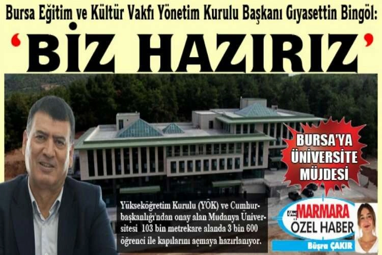 Yükseköğretim Kurulu (YÖK) ve Cumhurbaşkanlığı'ndan onay alan Mudanya Üniversitesi 103 bin metrekare alanda 3 bin 600 öğrenci ile kapılarını açmaya hazırlanıyor.