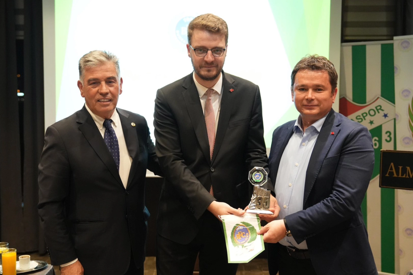 Başkan Aydın’a toplantı anısına takdim edilen plaket ise gecenin duygu dolu anlarından biri oldu. Plaketi Bursa Fan Club Derneği Başkanı Ali Ademoğlu’nun elinden alan Aydın, “Bu güzel akşama hoş bir anı kattı,” diyerek teşekkürlerini iletti.