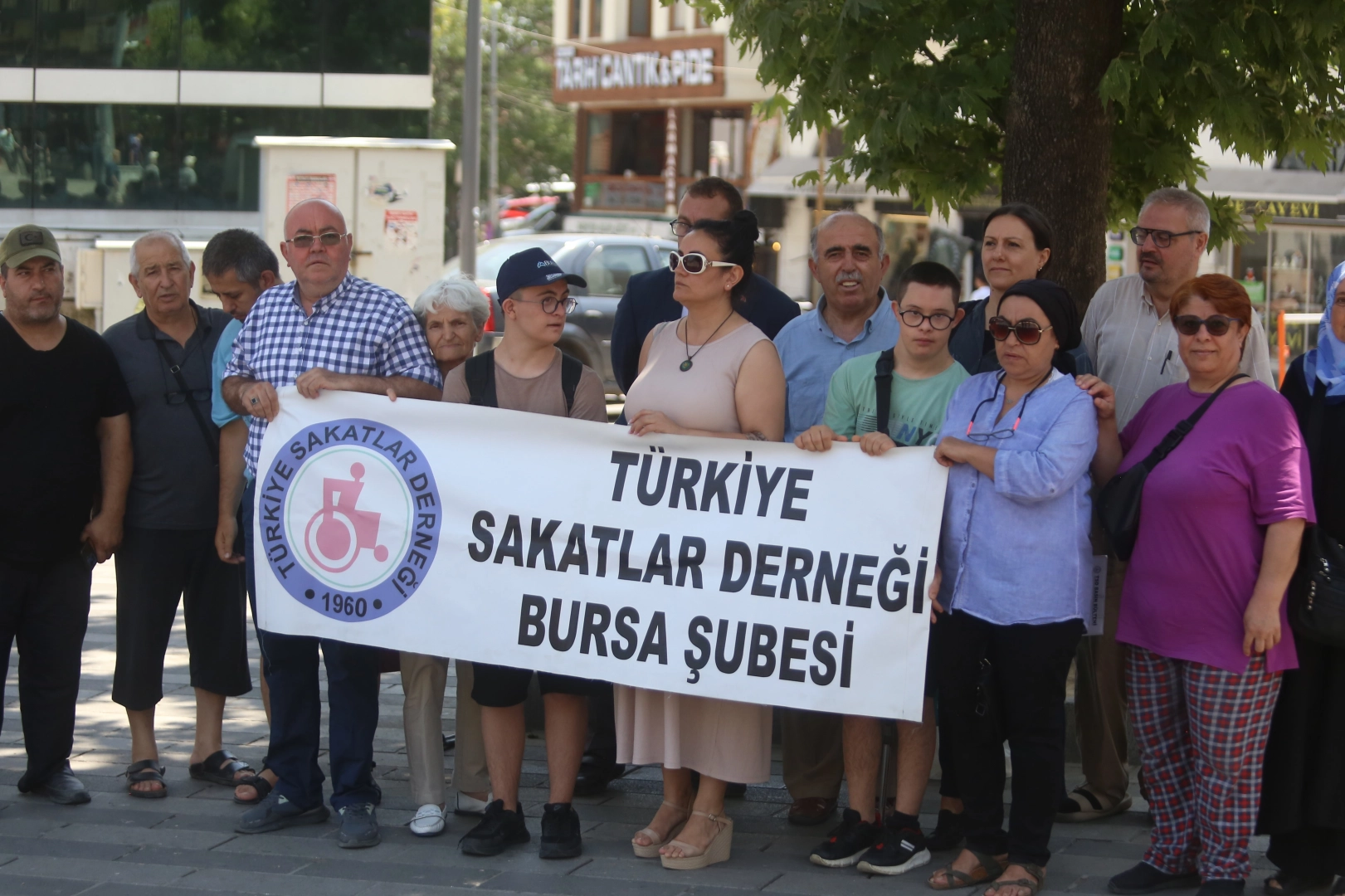 Bursa'daki engelliler 15 Temmuz Demokrasi Meydanı'nda bir araya gelerek düzenleme taslağına tepki gösterdi.
