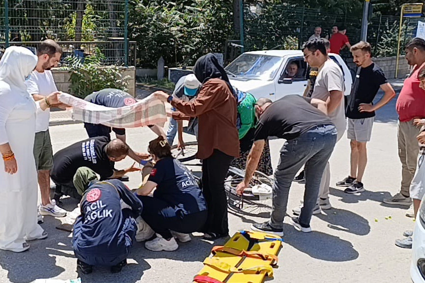 Bursa'nın İnegöl ilçesinde meydana gelen kazada otomobilin çarptığı bisikletli yaralandı. Vatandaşlar, yaralanan adamın üzerine örtü tutarak onu güneşten korudular. Kaza, saat 13.30 sıralarında Orhaniye Mahallesi Ankara Caddesi'nde meydana geldi. Hasan Osman T. (38) yönetimindeki 06 BGA 075 plakalı otomobil, bisikletiyle yoldan karşıya geçmekte olan Erol Z.'ye (67) çarptı. Çarpmanın etkisiyle devrilen bisikletten düşen sürücü yaralandı. Yaralının yardımına vatandaşlar koştu. Vatandaşlar, evlerinden getirdikleri örtüyle yaralıyı güneşten korudular. Erol Z., kaza yerine sevk edilen ambulansla İnegöl Devlet Hastanesine kaldırıldı. Polis kazayla ilgili soruşturma başlattı.