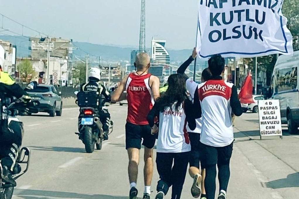 Türk Emniyet Teşkilatı'nın 180. yıldönümü dolayısıyla Bursalı 4 maratoncu, açtıkları pankartla birlikte 6 kilometre koştu.