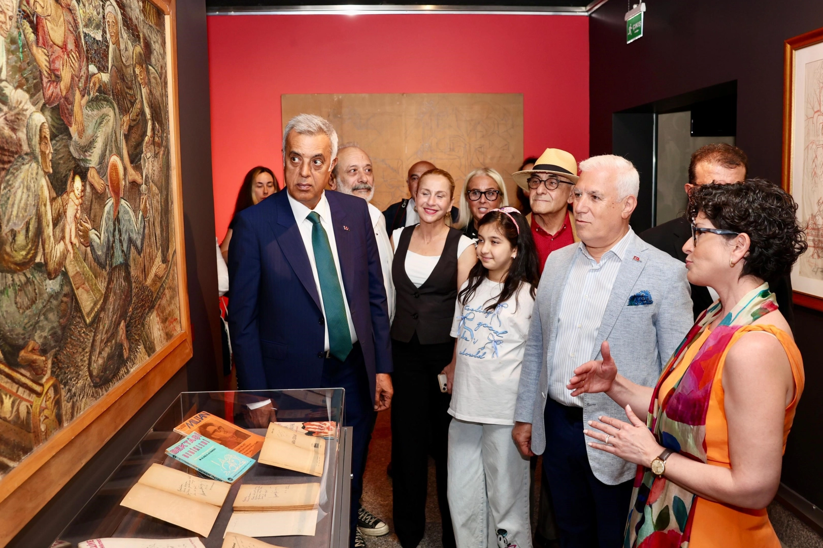 Usta sanatçı İbrahim Balaban’ın oğlu Hasan Nazım Balaban, Başkan Mustafa Bozbey’e ve serginin açılmasında emeği geçen herkese teşekkür ederek, Balaban Kültür Evi projesinden de mutluluk duyduğunu dile getirdi. Nazım Alpman ile Nebil Özgentürk de serginin açılmasından duydukları memnuniyeti dile getirerek emeği geçenlere teşekkür etti. Konuşmaların ardından Başkan Mustafa Bozbey tarafından Nazım Alpman, Nebil Özgentürk ve Hasan Nazım Balaban’a katkılarından dolayı hediye takdim edildi. Hasan Nazım Balaban tarafından Başkan Bozbey’e hediye edilen İbrahim Balaban’ın eseri de sergide yerini aldı. Başkan Mustafa Bozbey ve beraberindekiler daha sonra sergiyi gezerek eserleri inceledi.