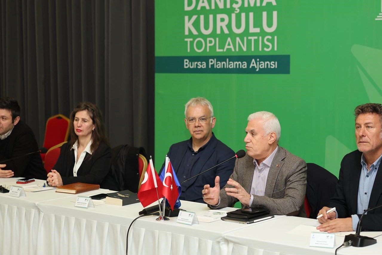 Bursa Planlama Ajansı’nın Danışma Kurulu toplantısında akademisyen ve yöneticilerle bir araya gelen Bursa Büyükşehir Belediye Başkanı Mustafa Bozbey, Çevre Düzeni Planı’yla hep birlikte güç oluşturduklarını belirterek, "Bursa bir değişim ve dönüşüm sürecini yaşadı" dedi. 2050 vizyonlu 1/100.000’lik Çevre Düzeni Planıyla şekillenecek ‘Kent Anayasası’nın oluşturulması, kentli hakları ile kent kimliğinin ortaya konulması, sürdürülebilir kentleşme ve yaşanabilir ‘Yeşil Bursa’ hedefiyle Büyükşehir Belediye Başkanı Mustafa Bozbey öncülüğünde kurulan Bursa Planlama Ajansı’nın 8. Danışma Kurulu toplantısı gerçekleştirildi. Atatürk Kültür Merkezi Merinos Yerleşkesi’ndeki toplantıya, Başkan Mustafa Bozbey’in yanı sıra Bursa Planlama Ajansı’nın Danışma Kurulu Başkanlığını yürüten Halk Sağlığı Uzmanı, CHP Bursa Milletvekili Prof. Dr. Kayıhan Pala, CHP Bursa Milletvekili Orhan Sarıbal ve Hasan Öztürk, Büyükşehir Belediyesi Genel Sekreter Yardımcıları Nazlı Yazgan ve Mehmet Yıldız, Çevre Düzeni Planı Proje Yürütücü Koordinatörü Prof. Dr. Fatih Terzi, Bursa Kent Konseyi Başkanı Prof. Dr. Ertuğrul Aksoy, akademik odaların temsilcileri ve bilim insanları katıldı.
