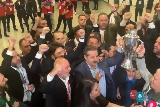 Devlet eski Bakanı AK Parti Artvin Milletvekili Faruk Çelik ile Bursa Büyükşehir Belediye Başkanı Mustafa Bozbey, Bursaspor'un şampiyonluk kupasını birlikte kaldırdı.