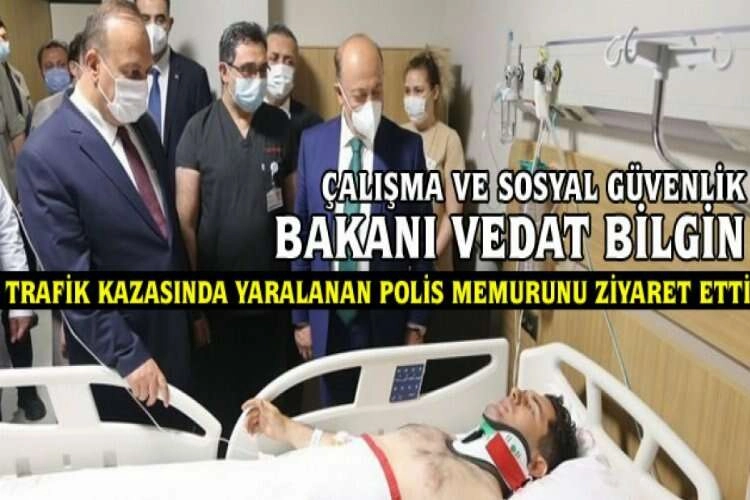 Bir dizi program için Bursa'ya gelen Çalışma ve Sosyal Güvenlik Bakanı Vedat Bilgin, Bursa Valisi Yakup Canbolat ve beraberindeki heyetle trafik kazasında yaralanan polis memuru Erdem Yavaş'ı Şehir Hastanesi'nde ziyaret ederek, geçmiş olsun dileklerini iletti.