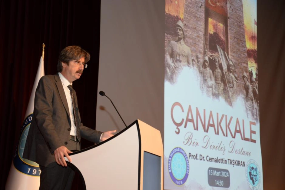 Prof. Dr. Mete Cengiz Kültür Merkezi’nde düzenlenen programa BUÜ Rektörü Prof. Dr. Ferudun Yılmaz, Fen-Edebiyat Fakültesi Dekanı Prof. Dr. Bilgen Osman, Türk Ocakları Bursa Şubesi Başkanı Prof. Dr. Selçuk Kırlı, Işıklar Jandarma Astsubay Meslek YüksekokuluKomutanı Albay Recep Karabulut, akademik ve idari personel ile çok sayıda öğrenci katıldı. Zafer günümüze ışık tutuyor Açılış töreninde konuşan Rektör Prof. Dr. Ferudun Yılmaz, Çanakkale’de şehadetin neredeyse somut olarak dile geldiğine söyledi. Halen o bölgeye yapılan ziyaretlerde aynı hissiyatın yaşandığına işaret eden Prof. Dr. Ferudun Yılmaz; “Milletlerin tarihinde böylesi tecrübeler son derece yön vericidir. Bu toprakları vatan olarak muhafaza etmemizin en sağlam reaksiyonu Çanakkale’de gösterilmiştir. İçinde şehadetin olduğu tecrübeye ilişkin ne kadar söz ederseniz edin kafi gelmeyecektir. Nitekim bu bilinç tam anlamıyla içimize işlemiş, şairlerimiz ve yazarlarımız söz konusu destan üzerine çokça yazmışlardır. Çanakkale destanı, bu milletin o dönemin süper gücü karşısında vatanını muhafaza için neleri gerçekleştirebileceğini gösterdiği gibi aynı zamanda günümüze ışık tutması açısından da önem arz etmektedir. Aradaki güç asimetrisine rağmen Türk milletinin hiçbir şekilde yenilemeyeceğini kanıtlamıştır. Allah, devletimize ve milletimize zeval vermesin. Bir daha böylesi durumlar yaşatmasın” diye konuştu. İkinci diriliş Çanakkale’de yaşandı Türk Ocakları Bursa Şubesi Başkanı Prof. Dr. Selçuk Kırlı ise Çanakkale zaferinin gerçek anlamda mübarek bir konu olduğunu vurgulayarak; “Yüzyıllarca geri çekilen Türk’ün tekrar ayağa kalkarak üzerine gelenleri durdurduğu yer Çanakkale’dir. Bu toplantının adının diriliş destanı olması çok önemlidir. İlk dirilişi Ergenekon’da yaşadıysak, ikinci dirilişi Çanakkale’de yaşadık. Benim için İstiklal Savaşı’nın da başlangıcıdır. Türk Ocakları için Çanakkale çok mühimdir. Üstünde kan olmayan toprak beş para etmez. Burası bizim vatanımız, Çanakkale bu vatanın bizim olmasının başlangıcıdır” açıklamasında bulundu. Çanakkale Bir Diriliş Destanı konferansında konuşmacı olarak yer alan Prof. Dr. Cemalettin Taşkıran da; “Çanakkale, Türk tarihinin şanlı bir sayfasıdır. Bunu bir kere en baştan söylemek gerekiyor. Gerçek bir ölüm kalım savaşıdır. Karşı taraf bizim kazanmamıza şans vermiyordu. Ancak Türk insanının kanaatkarlığı, vatanseverliği ve imanı Çanakkale zaferini bize kazandırmıştır. Onun için diyorum ki bu zafer, Türk tarihinin en şanlı olaylarından birisidir. Zaferlerimiz kadar mağlubiyetlerimizi de unutmamak gerekiyor. Buralardan ders çıkarmak ve ülkemizi geliştirmeyi sürdürmeliyiz” şeklinde konuştu. Konferansın sonunda Prof. Dr. Cemalettin Taşkıran’a katılımları ve sunumlarından ötürü teşekkür plaketi takdim edildi.