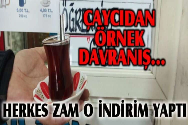 Osmangazi ilçesi İbrahimpaşa Mahallesi'nde okulların yoğun olarak bulunduğu bölgede çay ocağı işleten Ahmet Çetinkaya, öğrenciler "rahat rahat çay içebilsin" diye öğrencilere çayı 1 liradan satmaya başladı. Bu durumdan memnun olan öğrenciler 1 yerine 2 tane çay içmeye başladı. Esnafın örnek davranışı; herkes tarafından takdir edildi. Normal çayı 2 liradan satan çaycı öğrencilere çayı 1 liradan sattığını iş yerinin camına astığı afişle duyurdu. Öğrencilere özel indirim yaptığını ifade eden Ahmet Çetin Kaya, "Ben öğrenciler "rahat rahat çay içebilsin" diye onlara yüzde elli indirimli satıyorum. Benim çay ocağımın bulunduğu bölgede çok sayıda okul var. Yaptığım indirim öğrencileri çok memnun etti. Buraya gelen öğrenciler fiyatı görünce 1 yerine 2 tane çay içiyor. Herkesi çay içmeye beklerim" dedi.