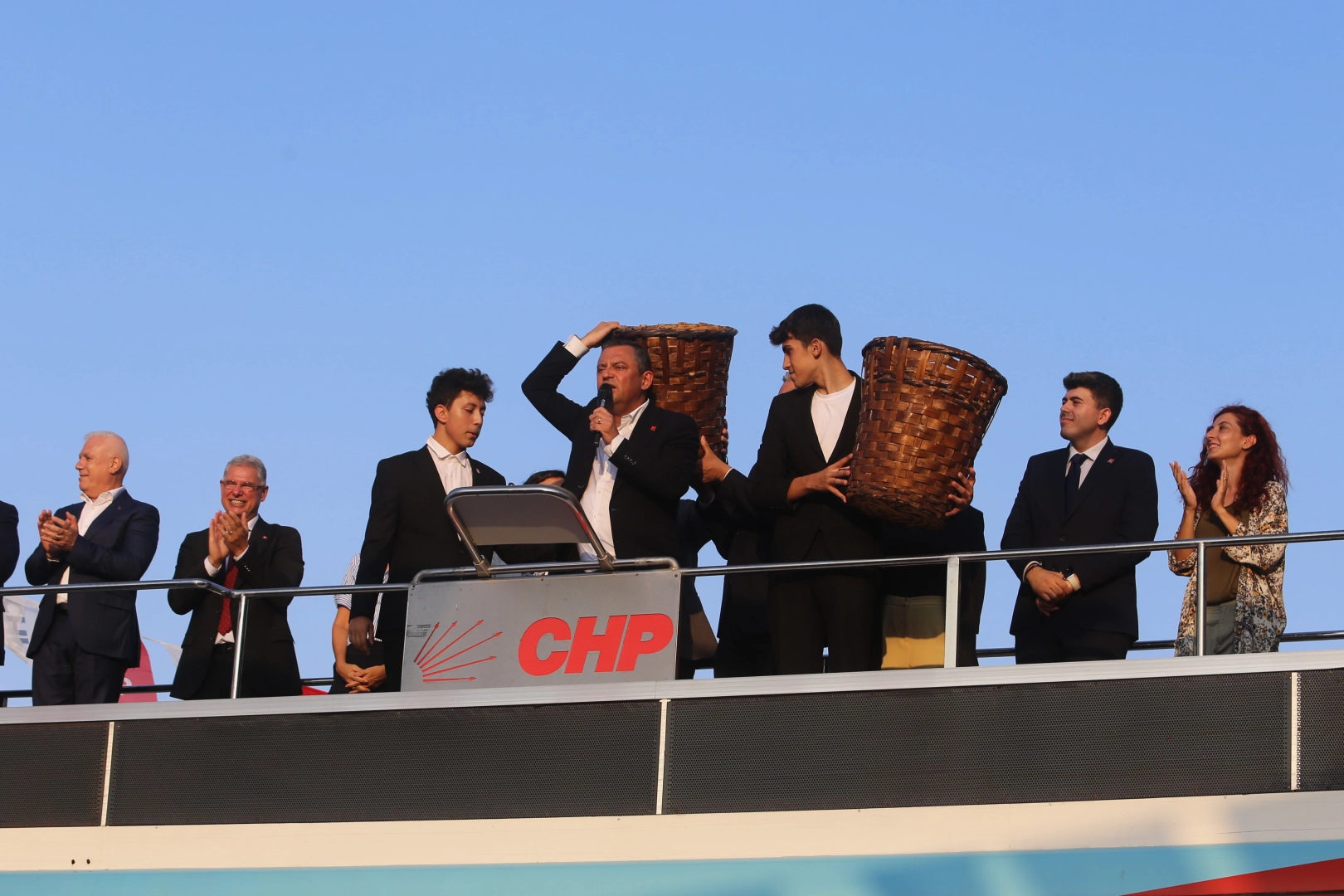 İki gencin protesto amaçlı küfe getirdiğini gören Özel, gençleri yanına çağırdı. Burada eleştirilerini sürdüren Özel, “Geçen gün Tayyip Bey'i dinliyorum.