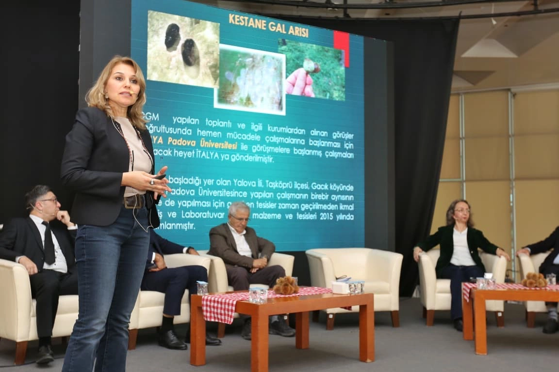 Kestanede yaşanan sorunlar konuşuldu Bursa Büyükşehir Belediyesi, kentin simge ürünlerinden kestanenin topraktan sofraya uzanan yolculuğunda yaşanan sorunları konuşmak, bilimsel ve teknik ihtiyaçları değerlendirmek ve ürünü geleceğe en sağlıklı şekilde taşıyacak adımları belirlemek amacıyla ‘Bursa Kestanesinin Geleceği’ panelini düzenledi. Atatürk Kültür Merkezi Merinos Yerleşkesi’ndeki programa, Bursa Büyükşehir Belediye Başkanı Mustafa Bozbey’in yanı sıra Büyükşehir Belediyesi yöneticileri, akademisyenler, kamu kurumlarının temsilcileri, üreticiler ve sektör paydaşları katıldı. Program öncesinde, katılımcılara pişmiş kestane, kestaneli sarma, kestaneli kurabiye, kestane şurubunda kabak tatlısı, kestane şekeri, kestane çorbası gibi lezzetler ikram edildi. "Bursa kestanesini yeniden kazanmalıyız" Bursa Büyükşehir Belediye Başkanı Mustafa Bozbey, 70’li yıllarda Fidyekızık’ta dahi çok fazla kestane alanı bulunduğunu, ancak zamanla kestanenin yok oluşuna tanıklık ettiklerini söyledi. Kestane şekeriyle ünlü olan Bursa’nın artık dışarıdan kestane alır hale geldiğini vurgulayan Başkan Mustafa Bozbey, "Bu durum Bursa’ya yakışmıyor. Bursa’da yetişen kestanelerin, diğer bölgelerdeki kestanelerden daha lezzetli ve kaliteli olduğu anlatılıyor. Tekrar bu duruma dönmemiz gerekiyor. Büyükşehir Belediyesi ve diğer kurumlar olarak bilimsel veriler ışığında çalışarak Bursa kestanesini yeniden kazanmalıyız. Bu konuda geçen yıl önemli bir adım attık ve süreci devam ettiriyoruz" diye konuştu. "Bursa'nın kestanesini tüm dünyaya duyuracağız" Çin’de bir buçuk milyon ton, Japonya’da 720 bin ton kestane üretildiğini hatırlatan Başkan Mustafa Bozbey, Türkiye’nin ise 700 bin ton civarında kaldığını vurguladı. Bursa’da ise kestane üretiminin 3.5 tona kadar düştüğünü dile getiren Başkan Mustafa Bozbey, "Bursa Kestanesi, Kasım 2017’de AB Coğrafi İşaret Tescili aldı. Bu yüzden kestaneye kent yöneticileri ve üreticiler olarak sahip çıkmalıyız. Her zaman üreticilerimizin yanındayız. Üreticilerimize kestane fidesi dağıtıyoruz ve dağıtmaya devam edeceğiz. Bursa’nın markası olan kestane üretimine destek olmak bizlerin sorumluluğudur. Bursa’da tekrar tonajı yükseltmeliyiz. İnşallah alacağımız tedbirler ve uygulamalarla Bursa’nın kestanesini tüm dünyaya duyuracağız" dedi. Panelin ilk bölümünde Bursa kestanesinin mevcut durumu, üretimdeki zorluklar, sorunlar ve talepler ele alındı. Moderatörlüğünü Bursa Uludağ Üniversitesi’nden (BUÜ) Prof. Dr. Cevriye Mert’in yaptığı birinci oturumda, Bursa Kent Konseyi Başkanı Prof. Dr. Ertuğrul Aksoy ‘İklim değişiklikleri ile oluşabilecek riskler’, BUÜ’den Doç. Dr. Himmet Tezcan ‘Kestane hastalıkları ve mücadelesi’, Bursa Teknik Üniversitesi’nden (BTÜ) Prof. Dr. Oğuzhan Sarıkaya ‘Kestane gal arısı ile alternatif savaş yöntemleri’, Bursa İl Tarım Müdürlüğü’nden Dr. Kıymet Senan Savaş ‘Kestane zararlıları ve mücadelesi’, Orman Bölge Müdürlüğü’nden Orman Yüksek Mühendisi Özden Açıcı ‘Biyolojik mücadele ve toplama alanlarındaki güvenlik önlemleri’, üretici Ertuğrul Sünel ‘Üretimde yaşanılan sorunlar ve talepler’ hakkında bilgi verdi. Panelin ikinci oturumunda ise ‘Bursa kestanesinin değeri ve alternatif kullanım alanları’ konuşuldu. Moderatörlüğünü BUÜ’den Öğr. Gör. Fatih Yıldırım’ın yaptığı oturumda, Mudanya Üniversitesi’nden Dr. Gülşen Özduran ‘Kestanenin sağlık ve beslenme ürünlerinde kullanımları’, Bursa Aşçılar Derneği’nden Oktay Gülbahar ‘Gastronomide yenilikçi kullanımlar’, Kardelen Kestane Yöneticisi Ebru Aygün ‘Kestane şekerinin coğrafi işaret süreci’, Artizan Fırın’dan Hakan Aydın ‘Endüstriyel ve tarımsal üretimler’, ‘Fasulyeli’den Emir Topuk ‘Yemeklerde geleneksel kullanım alanları’ konularında bilgilendirme yaptı.