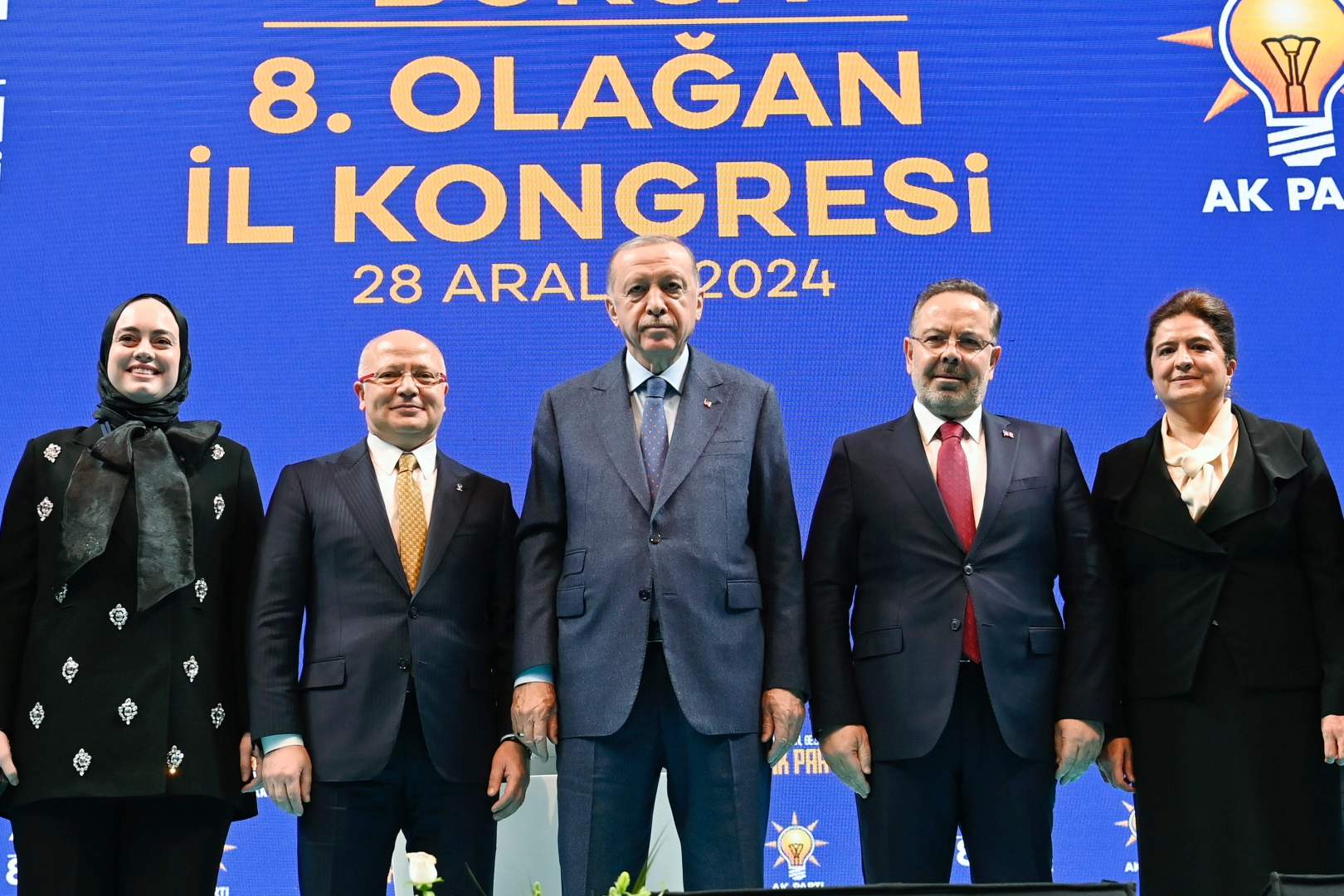 "Enflasyon saparsa asgari ücrete düzenleme yaparız" Türkiye ve dünyada olağanüstü gelişme olmazsa 2025 hedefini tutacağını ifade eden Erdoğan sözlerini şöyle sürdürdü: "Hazirandan beri istikrarlı düşüyor. Bu düşüş 2025 yılında daha da hızlanacak. Şayet enflasyon oranında çok ciddi bir sapma olursa, tabii ki biz de buna kayıtsız kalmaz gerekli değerlendirmeleri yaparız. İnancımız o dur ki buna gerek kalmayacaktır. Biz enflasyonu daha da düşürerek sadece asgari ücretlileri değil milletimizin tamamını rahatlatacak şekilde alım gücünü arttırmayı refah seviyesini fiyatları stabil tutarak yükseltmek istiyoruz. Özellikle son birkaç yılda ekonomik programımızı ve küresel rekabet gücümüzü riske atma pahasına asgari ücrette tarihimizin en yüksek artışına gittik. Asgari ücret 2023 Temmuz Aralık döneminde 11 bin 402 lira idi. 438 dolara tekabül ediyordu. 2024 ocakta 17 bin 2 lira yani o günkü kurla 575 dolar oldu. 2025 yılı için 22 bin 104 liraya döviz bazında 629 dolara yükseldi. Asgari ücreti Asya ülkelerinin tamamından yukarıya çıkarmamıza Avrupa seviyesine yaklaştırmamıza rağmen arzu ettiğimiz sonuca varamadık. Bunun temel sebebi ise yüksek enflasyon ve onu da aşan fırsatçılık ve fahiş fiyat artışıdır. Enflasyonu dizginledikten sonra bazı şeylere daha rahat konuşma ve çözüme kavuşturacağız. Milletimizden sabır metanet ve ekonomi programımıza güçlü destek istememizin sebebi budur. Son yıllardaki sıkıntılarımızı tarihe gömeceğiz. Eskiler tarlada izi olmayanın harmanda yüzü olmaz der. Biz bugün bu fedakarlıkları yapacağız ki önümüzdeki yıllarda rahata kavuşalım. Bu ülkenin cumhurbaşkanı ve ak parti lideri olarak milletime güveniyorum. Bursa’mıza ve teşkilatımıza güveniyorum."