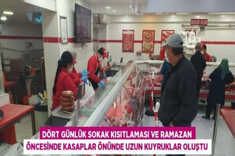 Bursa’da vatandaşlar dört günlük sokak kısıtlaması ve ramazanın gelmesiyle birlikte kasaplara akın etti.Ramazan ayının başlamasına sayılı günler kala et ve tavuk alışverişini son güne bırakmak istemeyen vatandaşlar kasaplarda yoğunluğa neden oldu. Bununla birlikte Ramazanın ilk üç günü de sokak kısıtlamasına denk gelince vatandaşlar et alabilmek için kasapların önünde uzun kuyruklar oluşturdu.Et ve tavuk gibi önemli gıda ihtiyaçlarını karşılamak isteyen vatandaşlar ilk orucun tutulacağı cuma gününden önce kasaplara yöneldi. Sosyal mesafe kuralları gereği kalabalık oluşturmamak adına alışverişlerini son güne bırakmak istemeyen vatandaşlar alışverişlerini bugünden hallediyor.Kasap esnafları geçen hafta sonu uygulanan sokağa çıkma kısıtlaması öncesi özellikle cuma gününü çok yoğun olarak geçirdiklerini alışverişlerin son güne bırakılmaması gerektiğini belirtti.