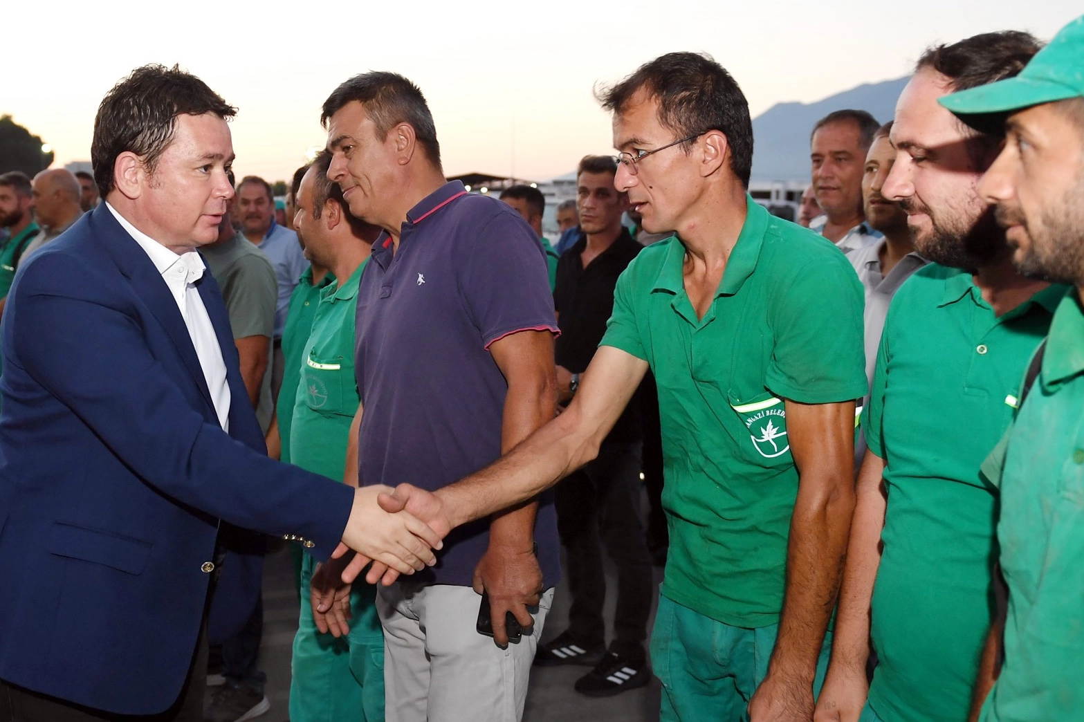 Yeni zam müjdesini duyunca büyük bir coşku yaşayan belediye işçileri, emeklerinin ve alın terinin karşılığını maaş bordrosuna yansıtmasından dolayı Başkan Erkan Aydın'a teşekkür etti.Başkan Aydın, sıcak sohbetin ardından günün ilk ışıklarıyla birlikte temizlik personelini görev yerlerine uğurladı.