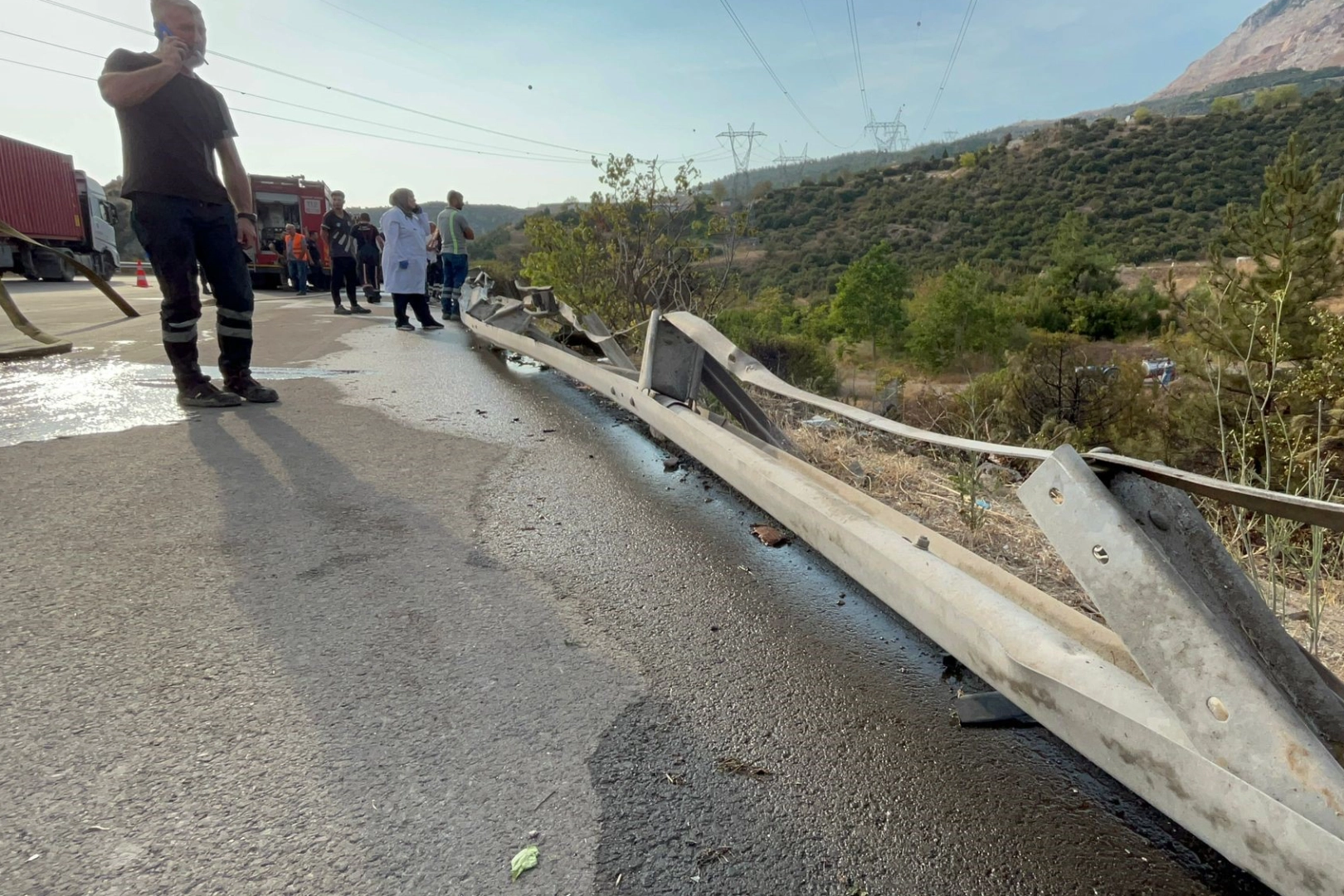 Sürücü tırdan çıktı, tır alev alev yandı Kaza sonrası tır sürücüsü Hasan G., hafif yaralı olarak tırdan çıktı. Tır, kısa süre içerisinde alevlere teslim oldu. Çevredeki vatandaşların ihbarı üzerine olay yerine çok sayıda polis, sağlık, itfaiye ve jandarma ekibi sevk edildi. Polis ve jandarma ekipleri çevrede güvenlik önlemleri alırken sağlık ekipleri hafif yaralanan Hasan G.'ye ilk müdahalesini gerçekleştirdi.