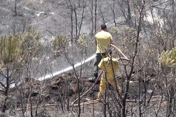 Geceyi soğutma çalışması yaparak geçiren ekipler havanın aydınlanmasıyla birlikte rüzgarın etkisiyle zaman zaman alevlenen bölgelere tek tek müdahale etti. Gündüz gökyüzünden çekilen drone görüntüleri yangının boyutunu bir kez daha gözler önüne serdi. Yaklaşık 500 futbol sahası büyüklüğündeki yeşil alan yangından sonra simsiyah görüntüsüyle dikkat çekti. Orman ekiplerinin yangının üzerinden 20 saat geçmesine rağmen bölgede halen çalışmaların devam ettirdikleri görüldü.